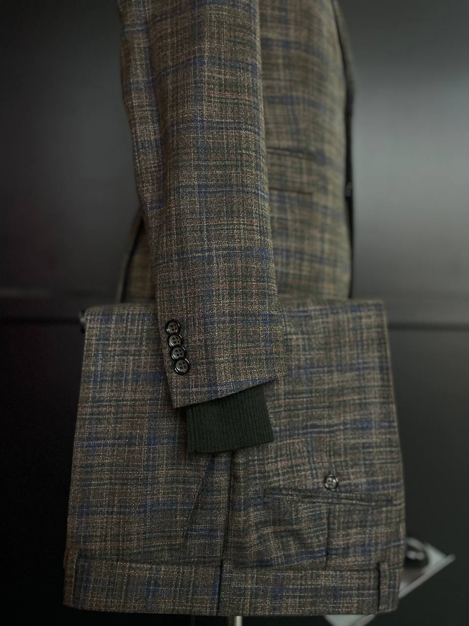 Классический зеленый костюм двойка в акцентную клетку — элегантное и стильное решение для любого мероприятия. Этот ансамбль идеально сочетает традиционный крой и современный дизайн, подчеркнутый выразительным узором. Такой костюм подойдет как для деловых встреч, так и для особых случаев, добавляя вашему образу уверенности и изящества.
